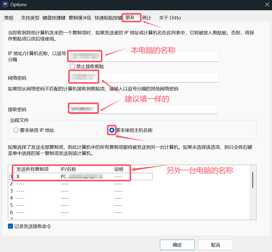 - 因为个人PC的IP一直在变,所以我使用同一局域网内电脑名称进行共享。具体配置如下图: